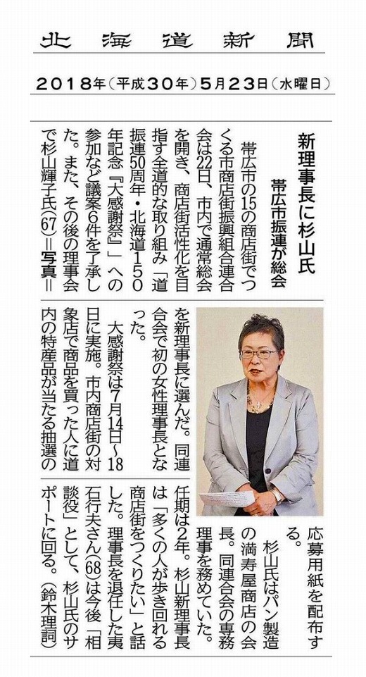 新理事長挨拶 杉山 輝子 (帯広栄通商店街振興組合 理事長)