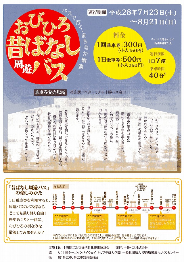 おびひろ昔ばなし周遊バスが、7月23日~8月21日まで運行中です