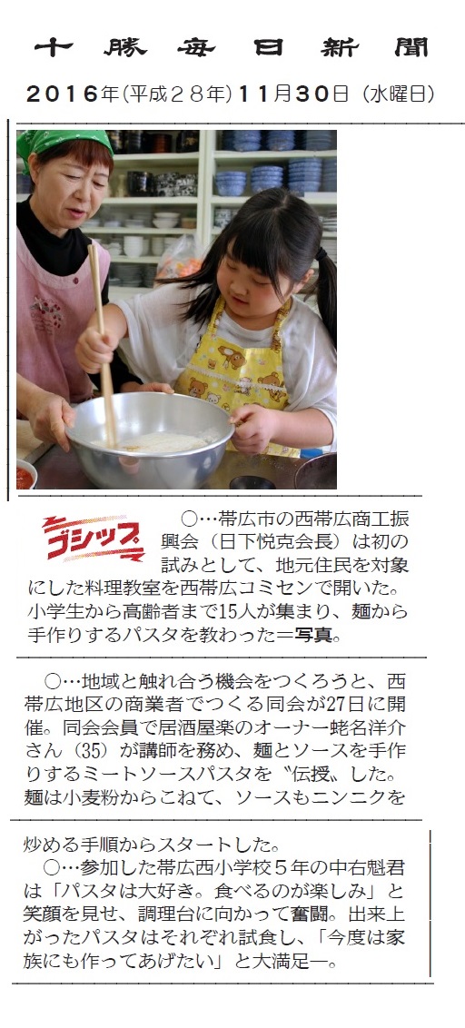 十勝毎日新聞 11月30日付、ゴシップ欄に掲載されました