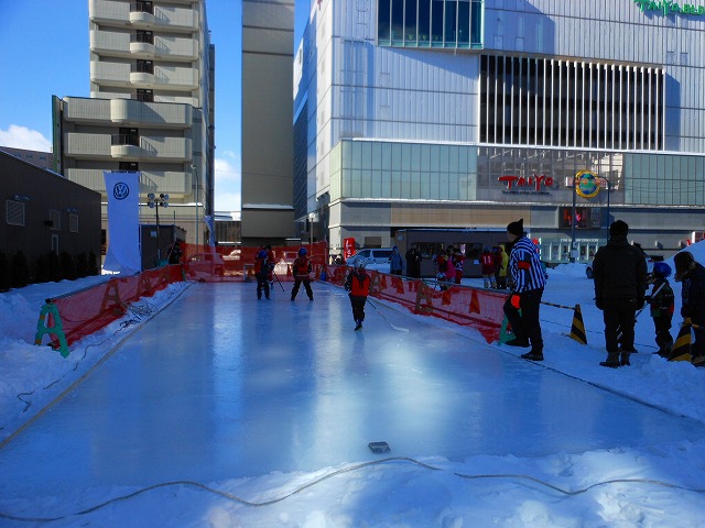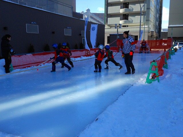 2017.2.4 第54回おびひろ氷まつり 第3会場 夢の北広場では、長靴ホッケー体験などが行われます カーリング体験、裸カーリングなどの氷上競技も楽しめます!
