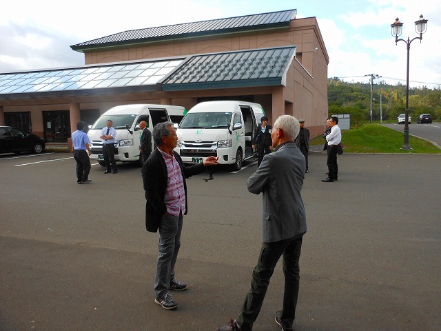 ジャンボタクシー2台に分乗し、出発・・・・占冠村「道の駅」にて休憩