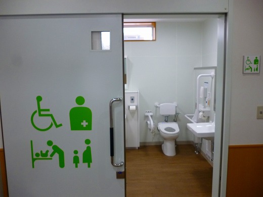 「おびひる」には、大型ディスプレーが設置され、待合スペースも拡張、多目的トイレも整備されました
