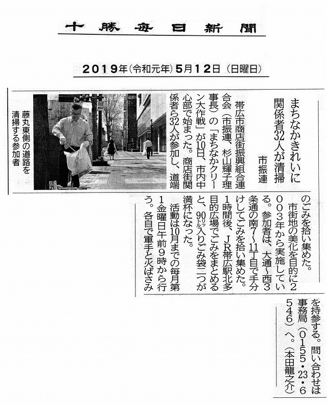 十勝毎日新聞2019.5.12掲載