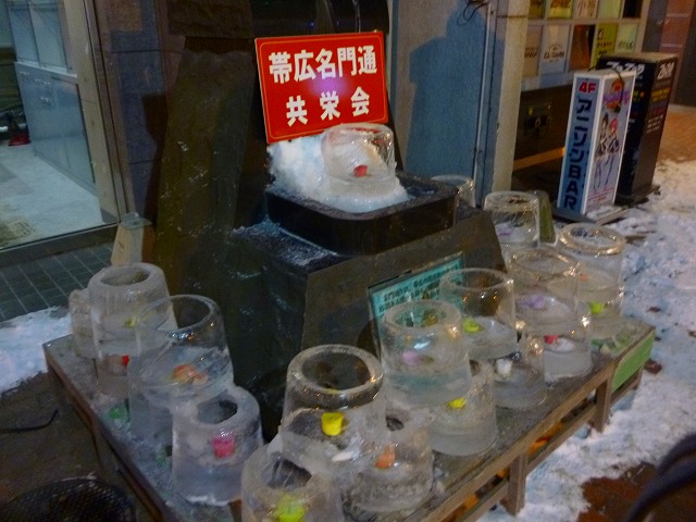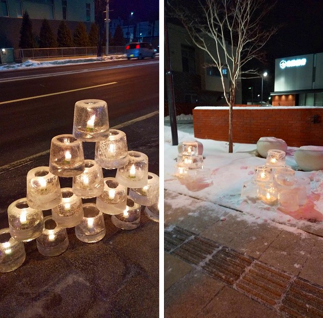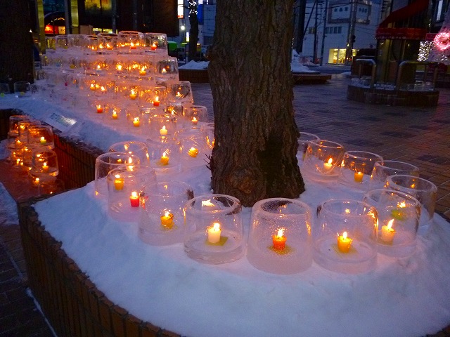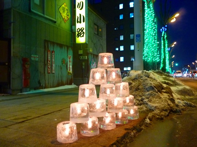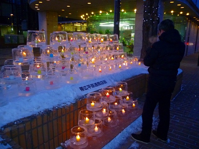 帯広氷まつりに協賛して、今年も各商店街で、アイスキャンドルを点灯しています
