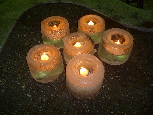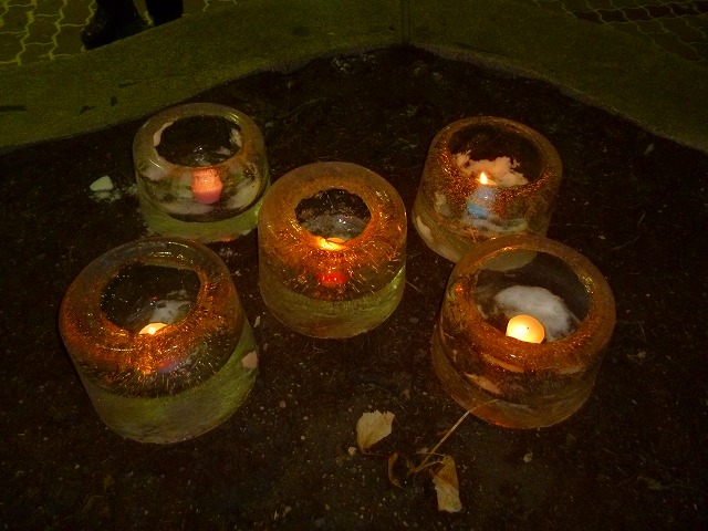 今年も・・・名門かっぱの像を囲むように・・・アイスランタンを設置・・・点灯します