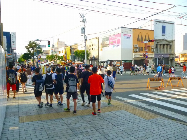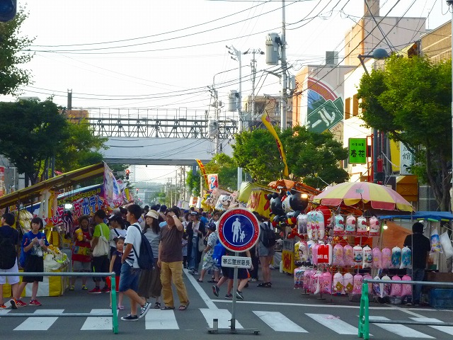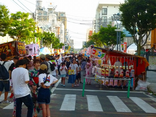 歩行者天国には、子供達、親子連れなどがあふれ、祭りを楽しいんでいます