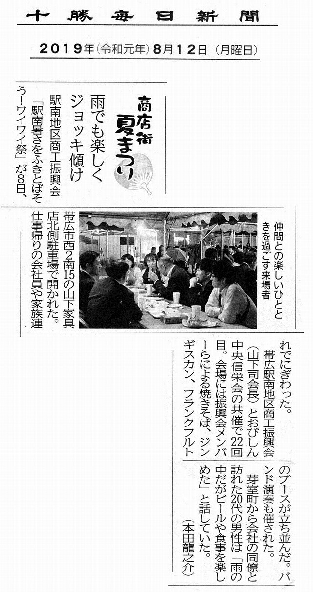 十勝毎日新聞2019.8.12掲載