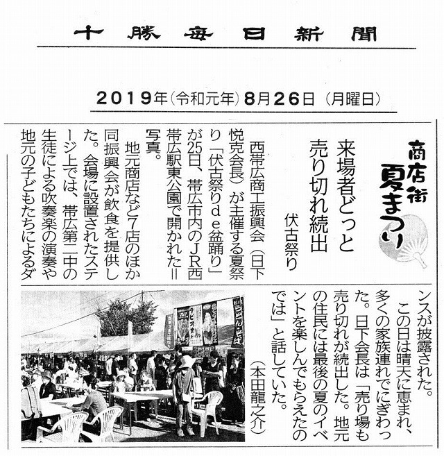 十勝毎日新聞2019.8.26掲載