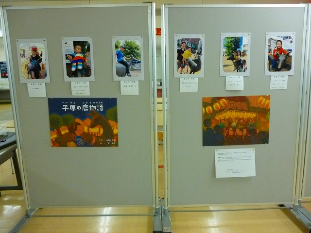 8月に募集した「写真」と「平原の鹿物語」の紙芝居を展示しています