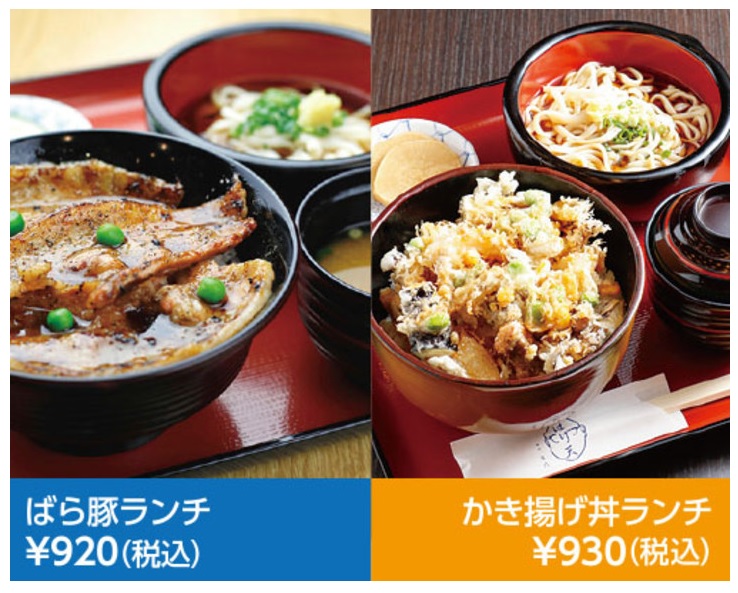 【ばら豚ランチ】 豚丼ランチがリニューアルしました。 十勝川西産長いもで育った【長いも豚】のばら肉でますますボリュームアップ! 【かき揚げ丼ランチ】 十勝産を中心に8種類の食材でサクサクに揚げたかき揚げ丼はヘルシーなおいしさ。 どちらも冷しうどん付きでボリューム満点です! |