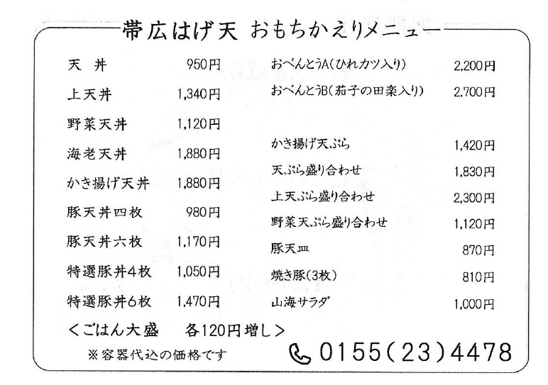 商店街のテイクアウト特集 帯広はげ天本店