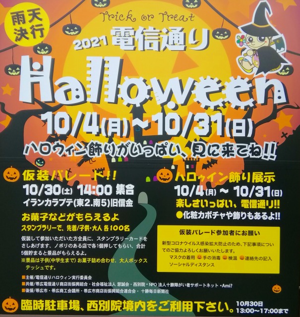 電信通り商店街にハロウィン飾りがいっぱい、見に来てね!!