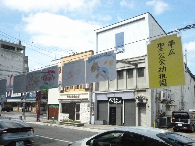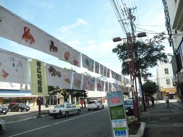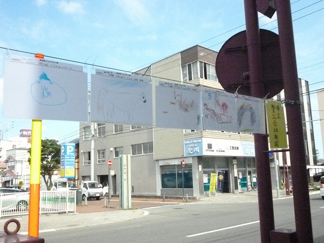 栄通に今年も市内の各幼稚園の3~6歳の園児が描いた可愛い絵が並びました・・・